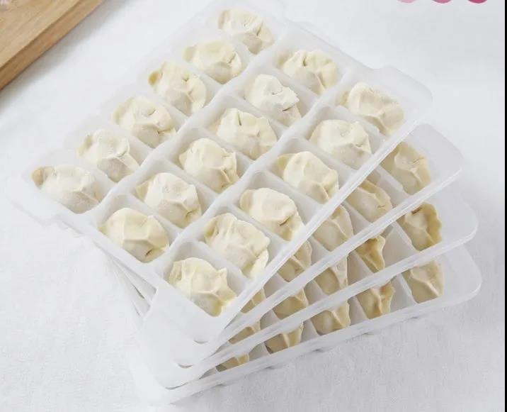 保存食材有专门的保鲜盒,保存饺子也一样,准备一些饺子盒,有一个一个独立小格子的那种,饺子包好后直接放进去就行了,然后盖上盖子,放进冰箱里冷冻即可。因为有盖子密封,所以水分不会流失,饺子就不会开裂。用格子隔开后,也不担心饺子会粘连。
