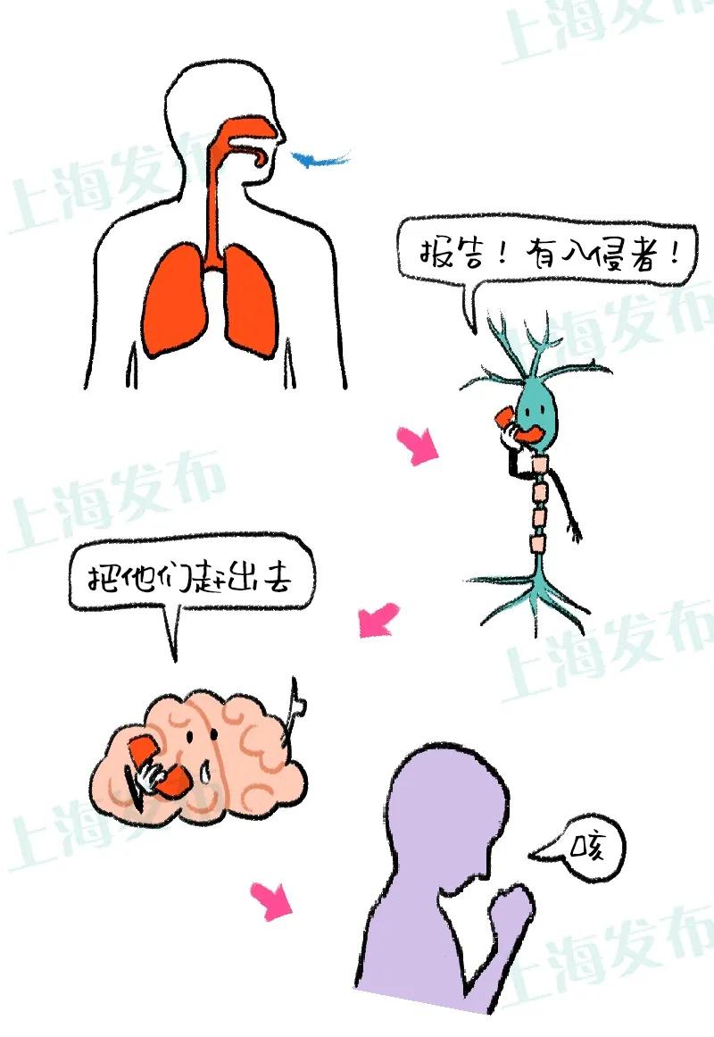 当我受到了粘液/有毒有害物质/炎性因子等刺激时,咳嗽反射弧被激活,你就会咳嗽了。