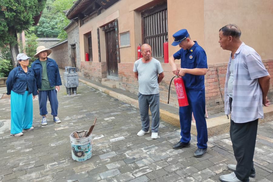 9月3日,县消防大队深入崇庆寺开展消防安全隐患专项检查,确保文物安全和游客安全。