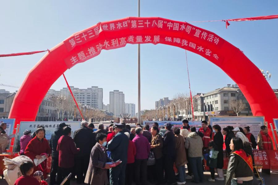 第三十三届“世界水日”宣传主题为“冰川保护”。第三十八届“中国水周”宣传主题为“推动水利高质量发展,保障我国水安全”。活动现场,各单位通过设立宣传展台、悬挂标语横幅、发放宣传手册等形式,大力宣传《中华人民共和国水法》《中华人民共和国水土保持法》《地下水管理条例》等法律法规,号召广大群众从自身做起、从点滴做起,养成合理用水的良好习惯。