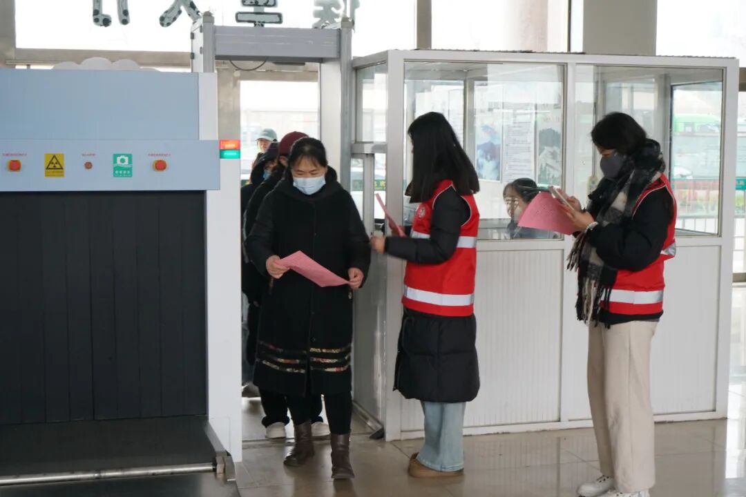 2月3日,县精神文明创建服务中心组织大学生志愿者走进长子汽车站,开展“春运暖程 平安出行”文明实践活动,以志愿之力为春运保驾护航,用暖心服务传递家乡温情。