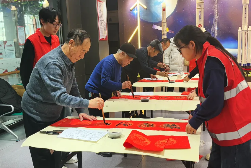 活动现场,墨香四溢,暖意融融。书法爱好者们齐聚一堂、挥毫泼墨,一撇一捺间,一副副寓意吉祥、笔墨生香的春联跃然纸上,字里行间既饱含辞旧迎新的美好愿景,又寄托着平安顺遂的真挚祈愿,尽显中华优秀传统文化的独特魅力。现场群众纷纷围拢桌前,认真挑选心仪的春联,在墨香年味中感受新春的喜悦。