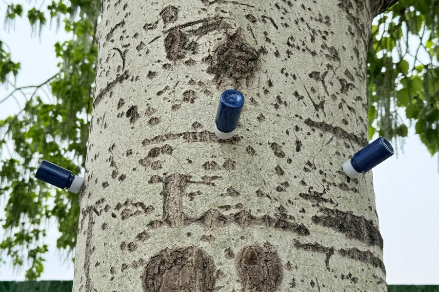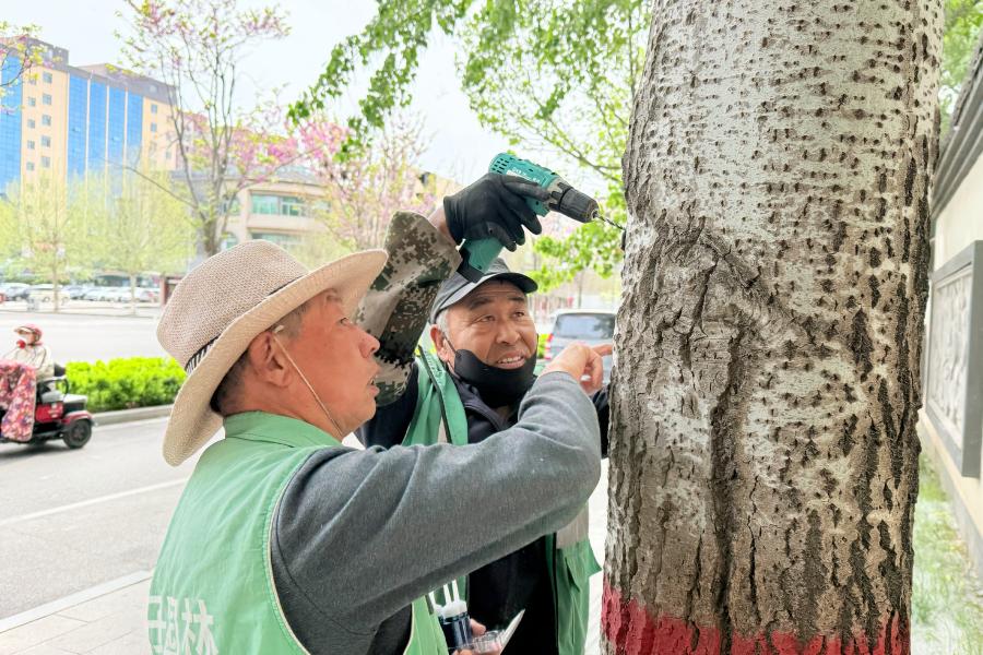 在长子会堂北侧、汽车站等杨树集中区域,工作人员严格遵循技术规范,根据树干胸径精准调配药剂,分工协作开展树干注药作业。此次共对100余株杨树实施源头防控,通过药物抑制花芽分化,预计可使来年飞絮产生量减少90%以上,从根本上缓解飞絮扰民问题。