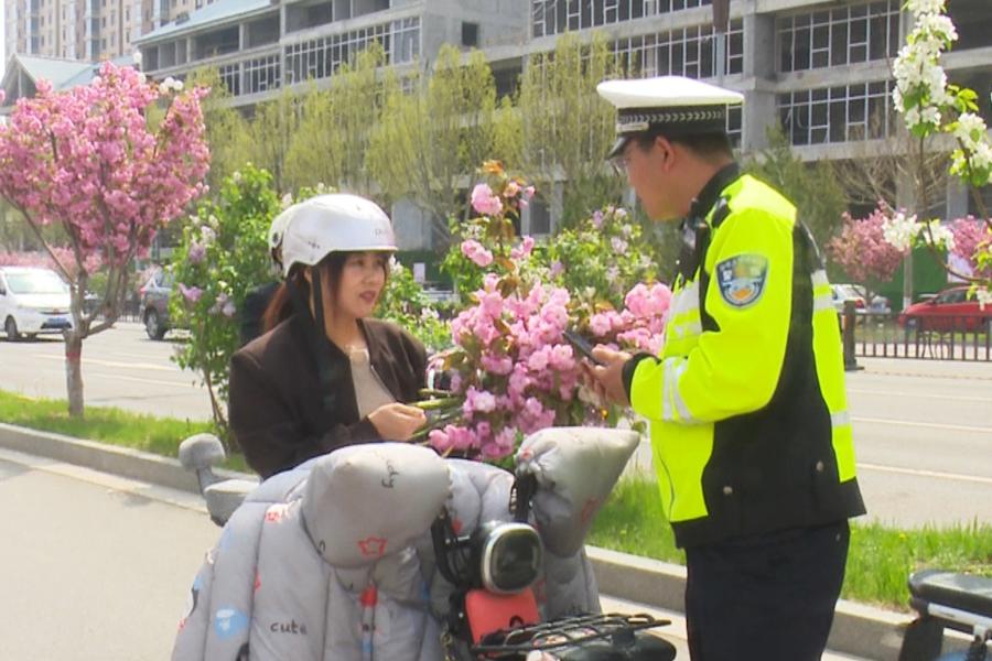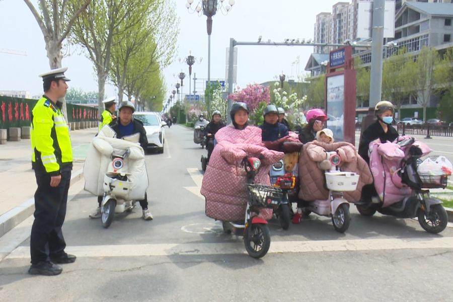 4月15日,在县城丹朱大街与南大街交叉路口,执勤交警结合早晚高峰车流、人流集中特点,采取现场劝导+专项整治相结合方式,重点纠治机动车不礼让行人、电动车驾乘人员未佩戴安全头盔等不文明交通违法行为,及时消除道路安全隐患。