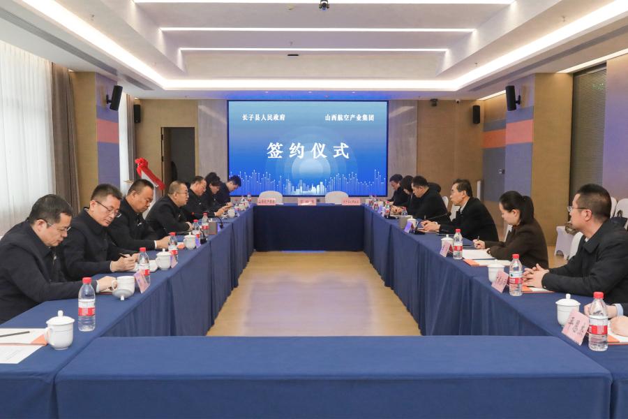 12月12日,长子县人民政府与山西航空产业集团签约暨长子县城市候机室揭牌仪式在君亭酒店三楼会议室举行。县委书记牛志强,县委常委、常务副县长王燕,山西航空产业集团党委书记、董事长陈阳,党委委员、副总经理丁国栋,长治机场公司党委书记、董事长吴显伟等出席仪式,副县长王玮主持仪式。