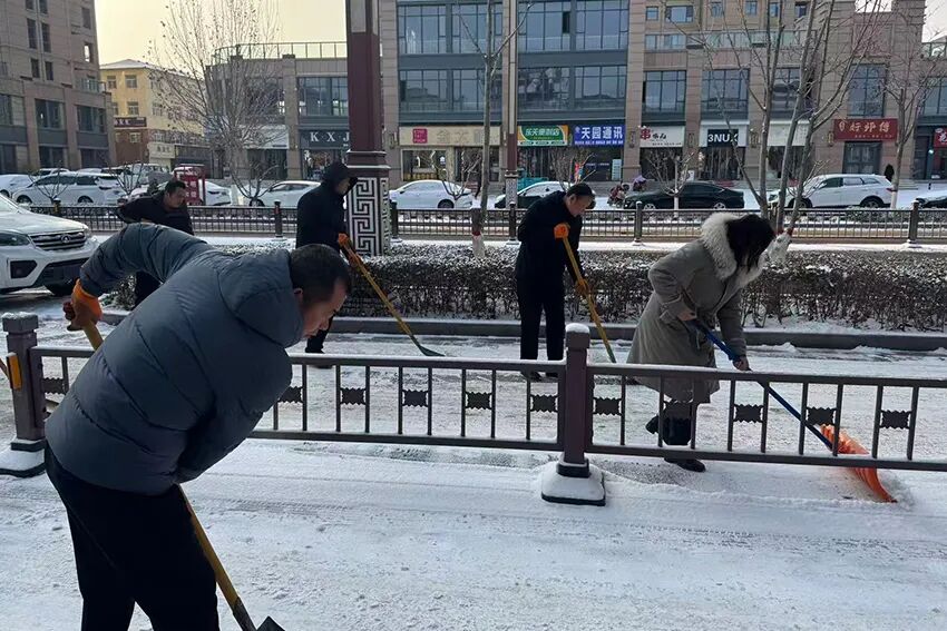 20日清晨,各乡镇迅速组织党员干部、网格员聚焦乡村道路、校园医院周边等重点区域,开展地毯式除冰清扫;县直各单位落实“门前三包”,组织人员清扫办公区域及周边积雪;志愿者身着红马甲,清理易滑路段残冰,搀扶老人孩童,用爱心传递温暖,形成全民参与的清雪氛围。