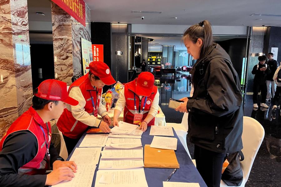 4月17日,君亭酒店、长子宾馆赛事专属报到通道正式启用。现场工作人员与志愿者分工明确、各司其职,全程贴心引导参赛运动员、教练员有序完成身份核验、信息登记、赛事物资领取等全流程报到手续,整个环节高效规范、井然有序。“此次来到长子参赛,赛事接待十分贴心,住宿环境舒适整洁,后勤保障细致到位,我们已经做好了充分的赛前准备,期待在赛场上全力以赴,发挥最佳水平,赛出风格、赛出佳绩。”参赛运动员王昕煜说道。