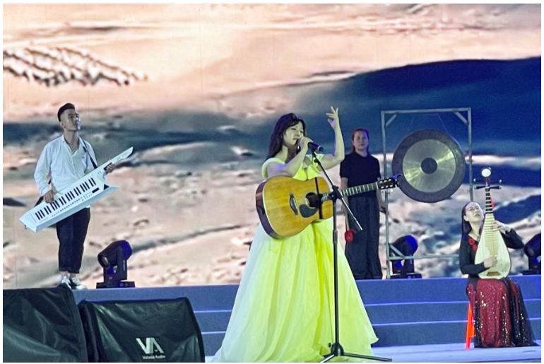 晚会以“田野之上”为主题,在欢快激昂的歌伴舞《欢迎你到长治来》中拉开帷幕。朗诵《今夜,我们必须歌唱》《我想为每一座山、每一条河取一个好听的名字》以诗意画卷形式,描绘了常张村人民的美好生活图景。歌曲《岭上灯光》歌颂了勇士沟的红色故事,激发了常张人民加快推进乡村全面振兴的磅礴力量。歌伴舞《常张苹果》等节目,充分展示了常张村建设宜居和美乡村取得的丰硕成果。