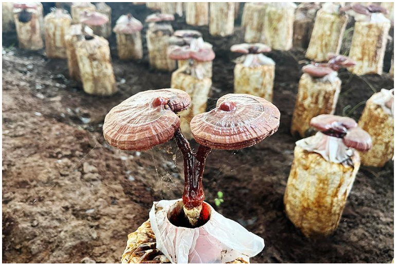 采收后的孢子粉,大部分会送往代加工厂进行破壁处理,后续将供给药店、养生馆,也会通过合作电商平台推向全国。作为药食同源的珍贵食材,孢子粉含有的多糖、三萜类化合物等成分,是传统养生“滋补调理”的重要物质基础,在健康消费市场需求稳定,这也为刁黄村的灵芝产业筑牢了市场根基。