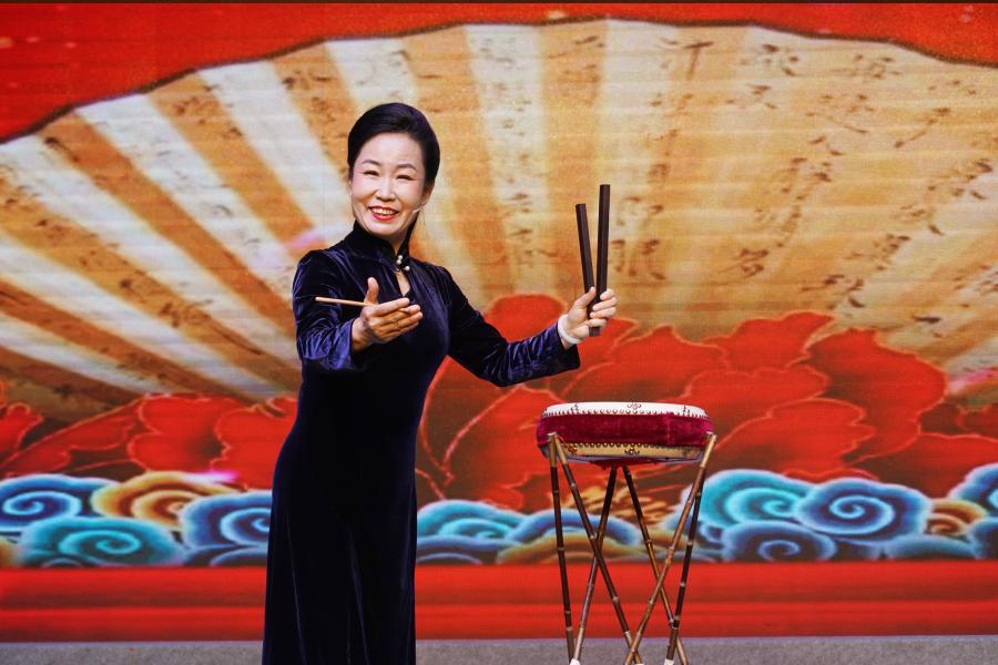 舞台上,刘引红左手持板、右手击鼓,节奏时而铿锵有力,时而婉转悠扬。她将党的二十届四中全会审议通过的“十五五”规划的核心内容,化作通俗易懂的唱词,让政策宣讲变得接地气、有温度。
