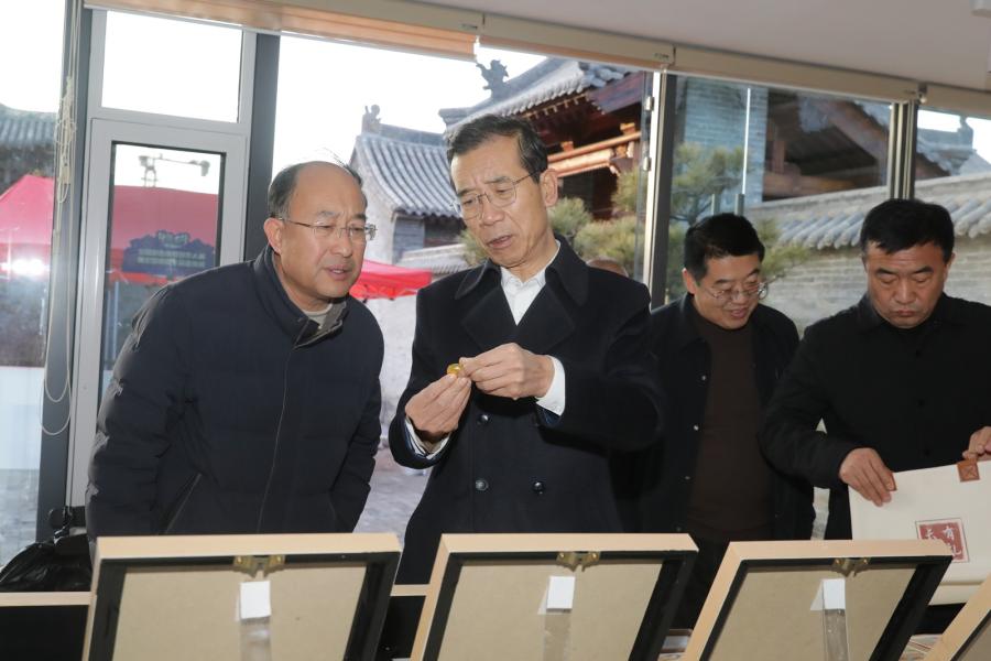 在天王寺雕塑展览区、文创展示区,牛志强详细了解雕塑作品征集与文创产品开发设计情况。他强调,文创产品是文化传承与创新的重要载体,要立足长子本土文化资源,坚持以文化为根基、以创意为核心,推动传统元素与现代设计深度融合,不断提升文创产品的文化内涵、市场价值和品牌影响力。