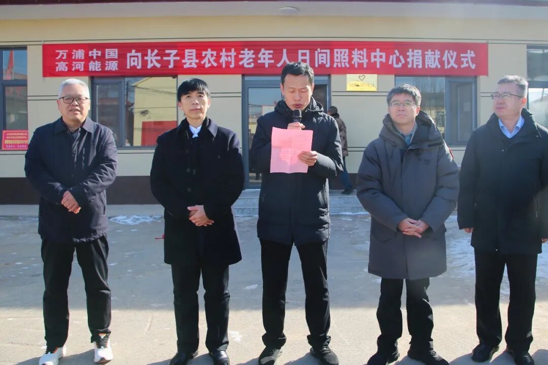 1月21日,万浦投资(中国)有限公司、山西高河能源有限公司向我县农村老年人日间照料中心捐赠仪式在常张乡东壁村举行。县委常委、副县长张建军出席,县民政局、常张乡负责同志及爱心企业代表参加仪式。