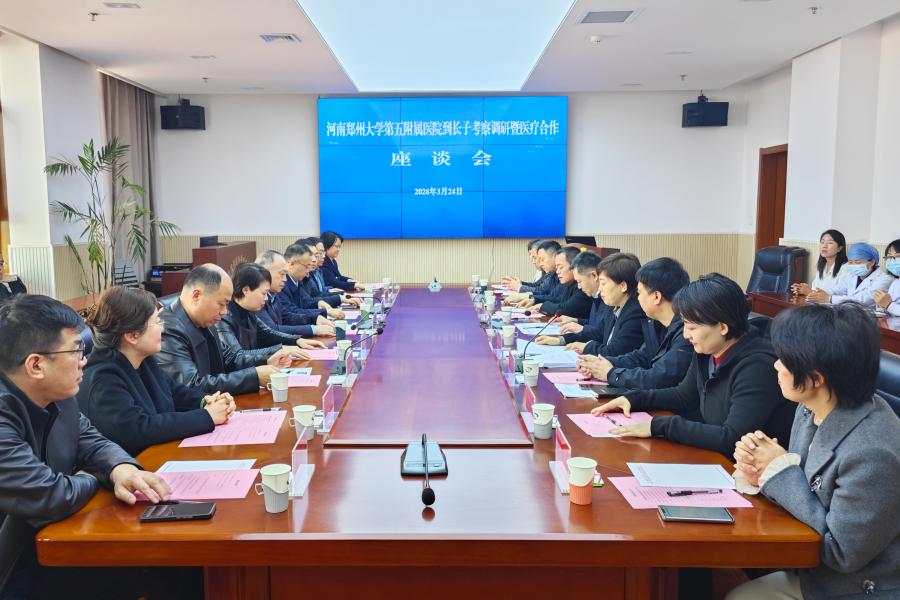 3月24日,郑州大学第五附属医院院长韩晔率专家团队来我县开展考察调研,并召开医疗合作座谈会。县委书记牛志强专程会见韩晔一行。副县长王玮,县卫体局、县医院、县中医院等单位负责人参加。