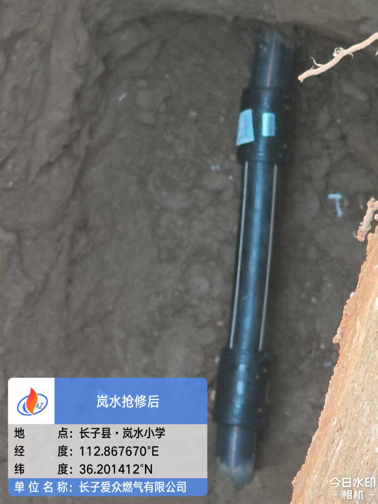 2025年12月7日,长子县爱众燃气有限公司位于鲍店镇岚水村的燃气管道被第三方施工时挖断,公司接到通知后,立即前往事发现场,并采取应急措施,将控制该管道的所有阀门关闭,并于下午组织人员接通了燃气管道,在确保无安全隐患的前提下,逐步恢复正常供气,保证了广大用户安全、平稳、持续用气。