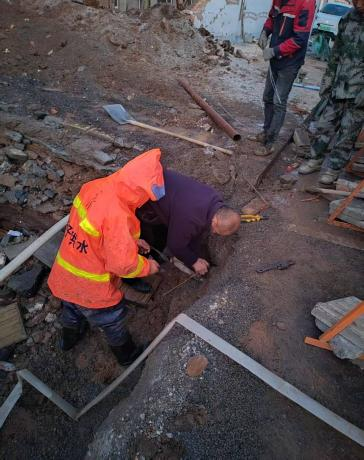 近日,政府东侧供水管道突发破裂,清水外泄。长子县水务集团有限公司迅速响应,第一时间调配挖掘机投入抢修,快速开挖作业面、精准定位漏点,对直径50厘米的破损管道实施切割移除,更换新管并完成焊接施工,在最短时间内恢复周边居民正常供水,最大限度降低了对居民日常生活的影响。