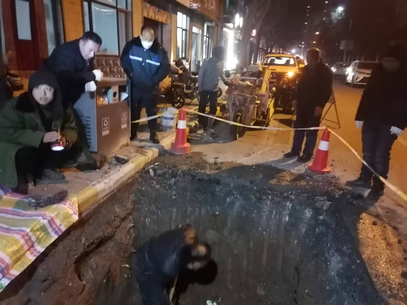 近日,精卫北路一段∅160供水主管突发故障,为保障周边用户正常用水,长子水务工程建设有限公司维修人员第一时间奔赴现场开展抢修工作。在应急照明灯的光束下,挖掘机挥动铁臂,精准破开坚硬冰冷的路面。维修人员冒着严寒,迅速跳入作业坑,在有限的空间里紧张有序地切割、清理、安装。冬夜寒气逼人,泥水浸透工装,全体抢修人员始终坚守岗位、无畏攻坚,经数小时连续奋战,破损管道顺利修复,区域供水全面恢复正常。