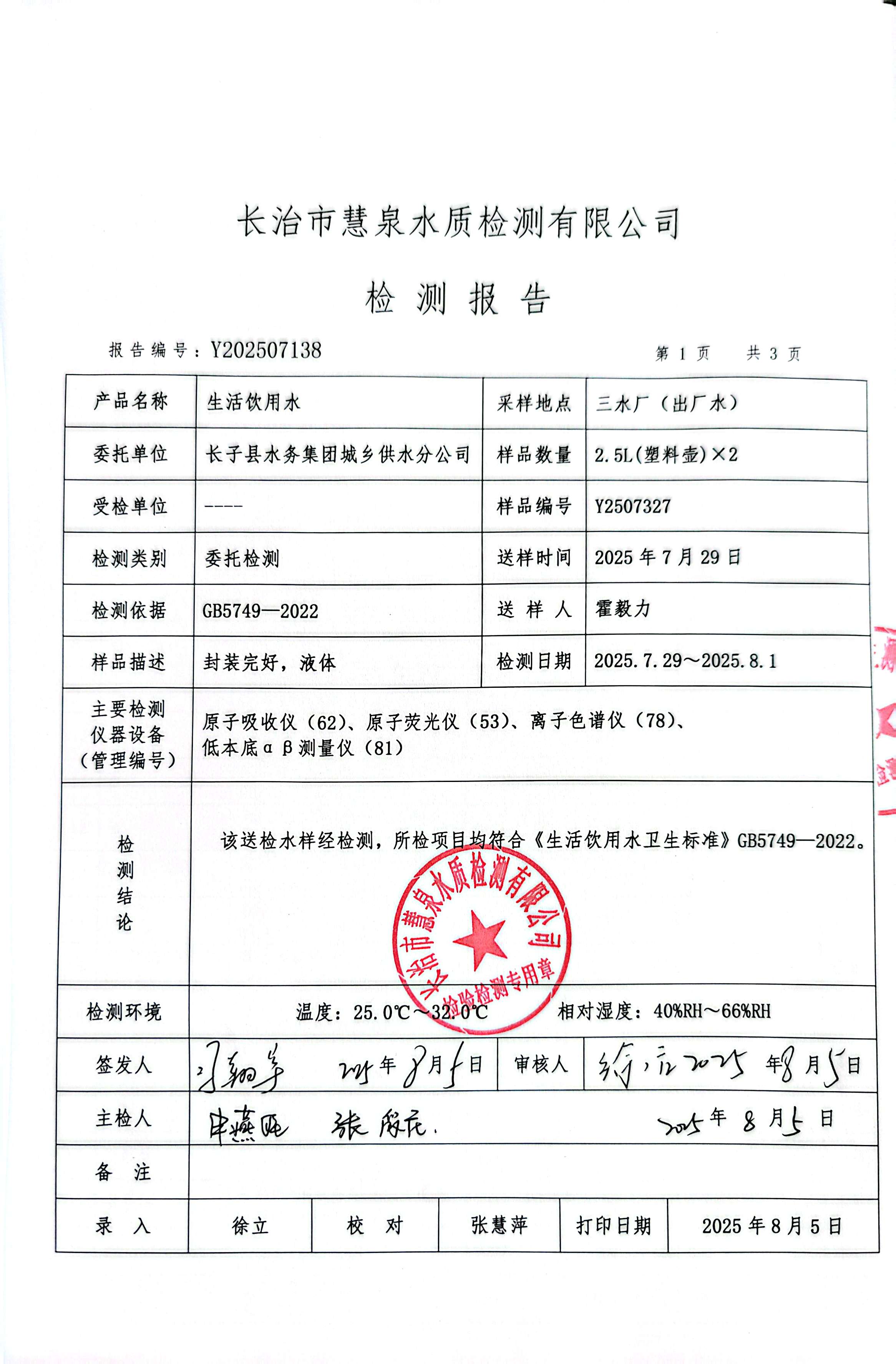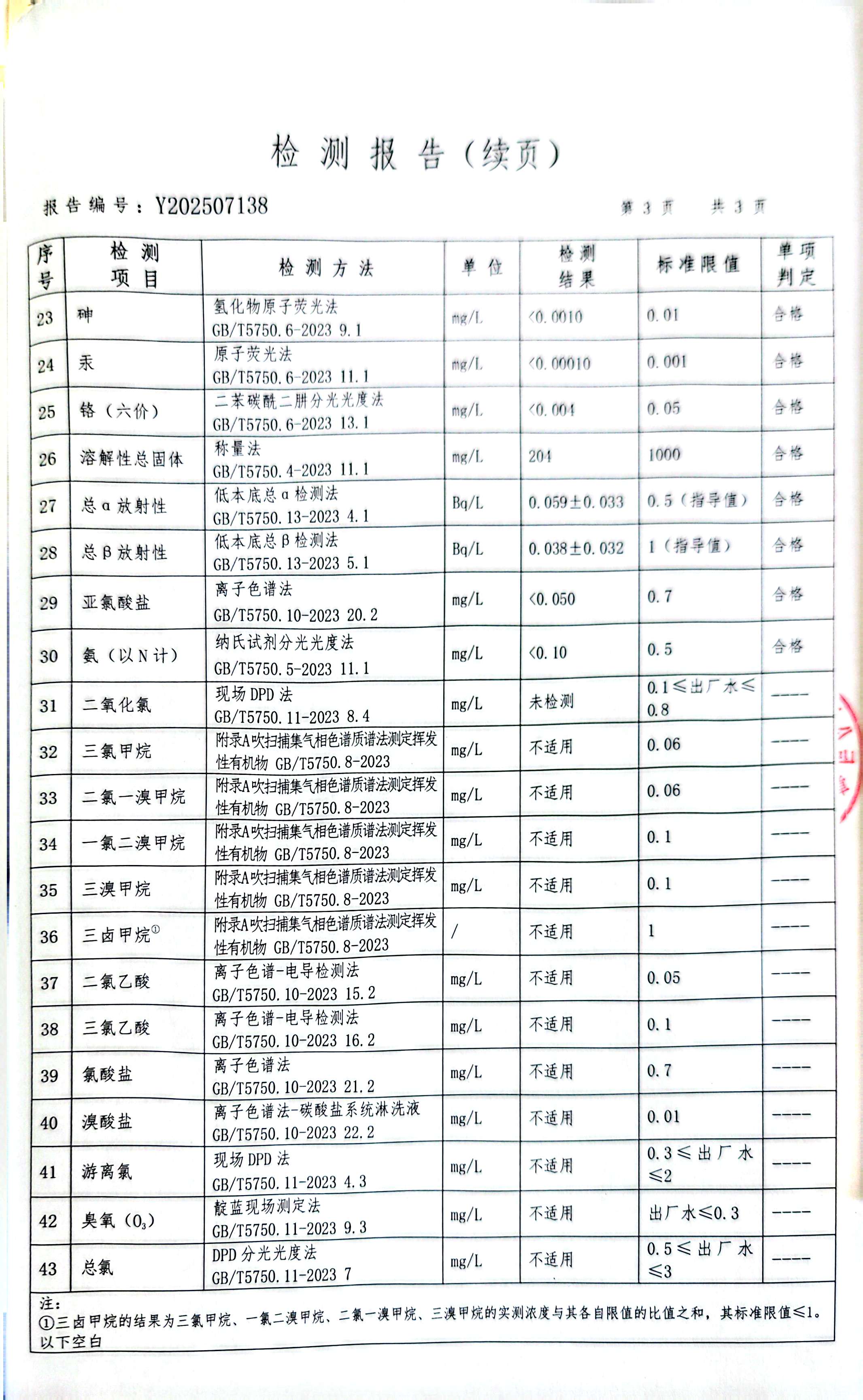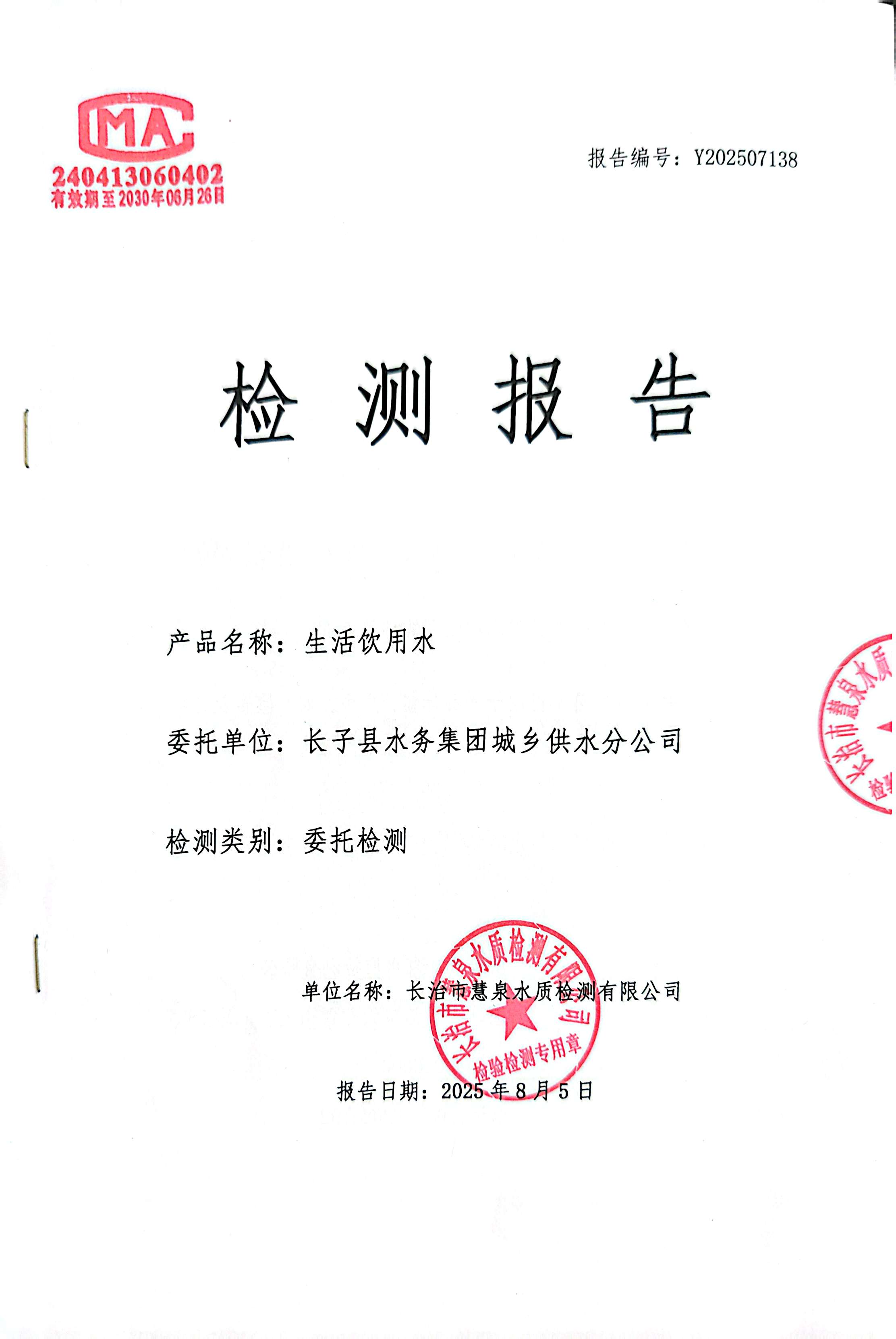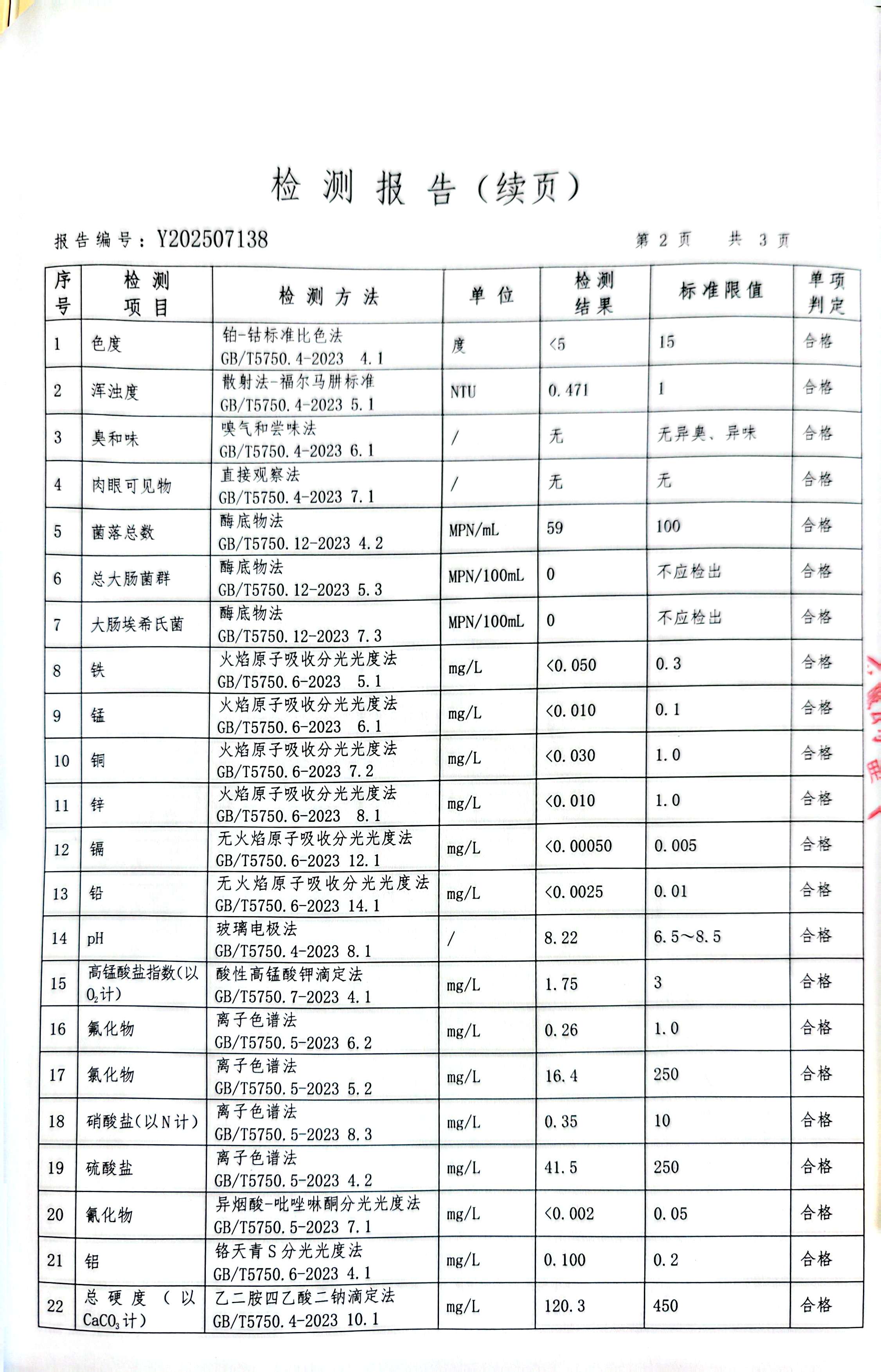 标题2025年7月份水质检测报告