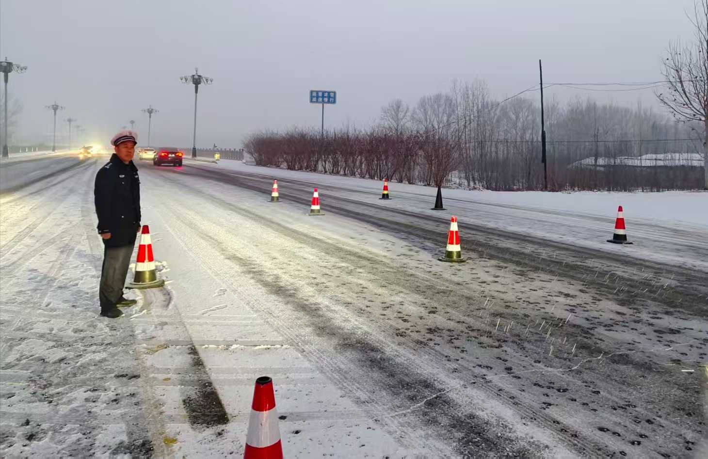 针对雪后路面湿滑、能见度降低、易发拥堵和事故的实际情况,我大队科学部署,将警力最大限度投入路面一线。执勤警力聚焦城区主干道、省道干线、乡镇重点路段,通过加密巡逻频次、强化车流疏导,全力保障通行秩序。同时加大对易结冰路段、积雪路段、急弯陡坡等危险区域的巡查力度,提醒过往车辆减速慢行、谨慎驾驶。在部分坡度较大路段及急弯路口,根据路况适时采取临时交通管制措施,快速处置各类突发状况,切实筑牢道路交通安全屏障。