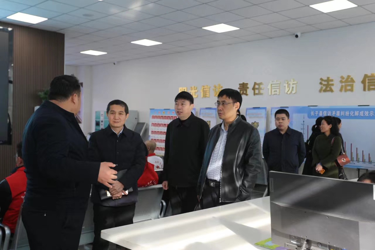 在县信访局,杨卫兵一行实地查看了功能接访室、调解室、立案室、法律服务室、仲裁工作室、心理疏导室的设置,详细了解了“三中心”资源整合、一体化融合办公情况。在丹朱镇和鲍店镇党群服务中心,杨卫兵一行认真听取了村级网格设置、范围及标准情况介绍,查看了全科网格智能信息平台、法律服务室等功能室的运行情况,了解了群众来访接待、矛盾调解办理工作,并对源头治理工作提出了具体指导意见。