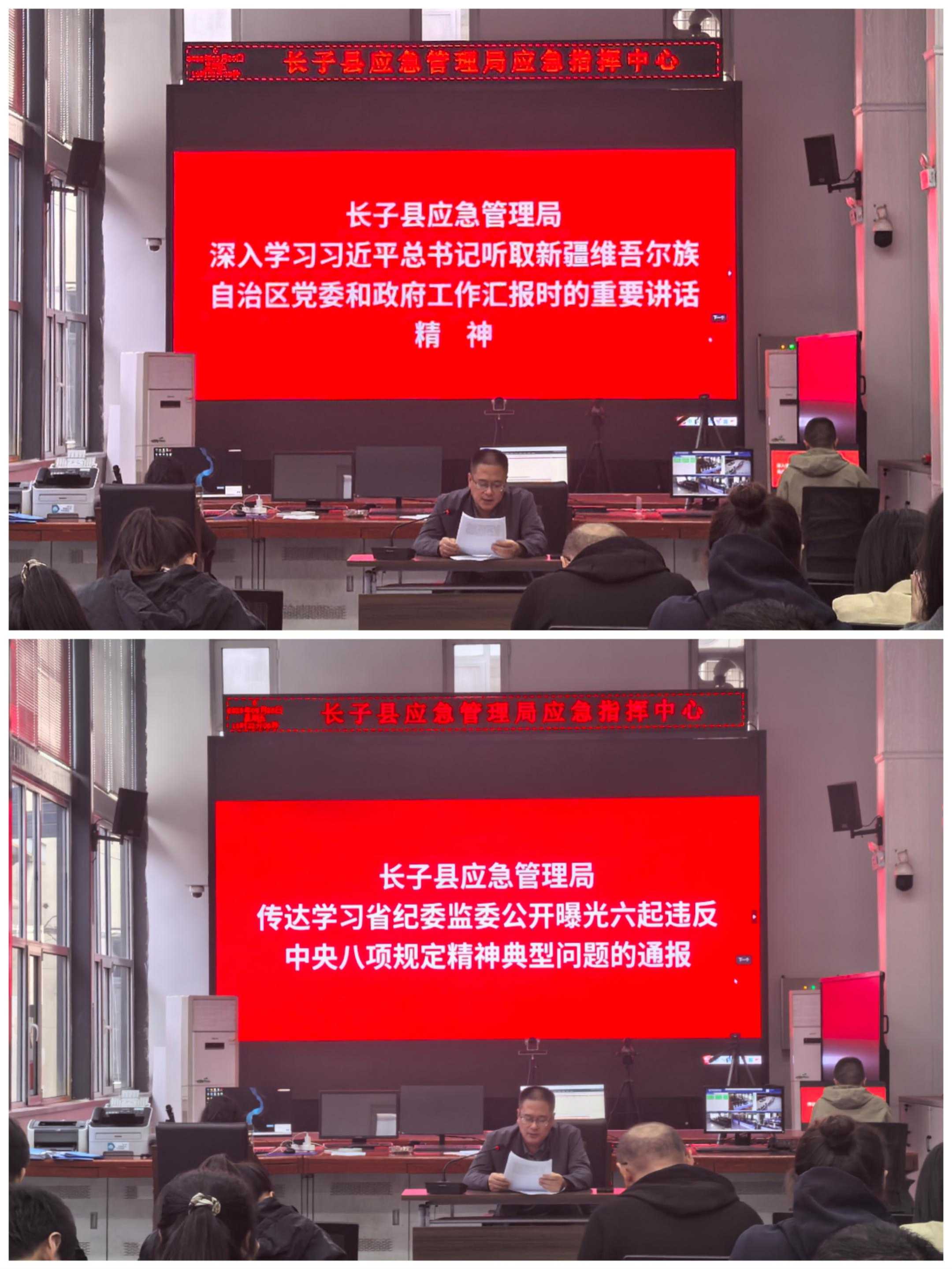 9月26日,长子县应急管理局组织全局干部职工在机关一楼会议室召开学习会议,集中传达学习习近平总书记听取新疆维吾尔自治区党委和政府工作报告时的重要讲话精神、省纪委监委公开曝光六起违反中央八项规定精神典型问题的通报。