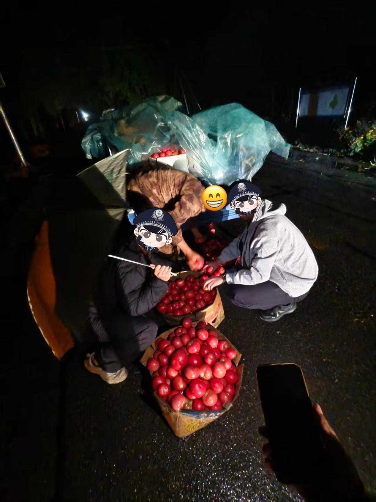 10月9日晚,秋雨连绵,夜色如墨。长子县公安局常张派出所民警在执行完当日任务返程途中,路遇一位老人因故不慎将大量西红柿散落湿滑路面。雨夜湿滑、视线朦胧,鲜红的西红柿滚落一地,既让老人心疼不已,又给路面增添了安全隐患。