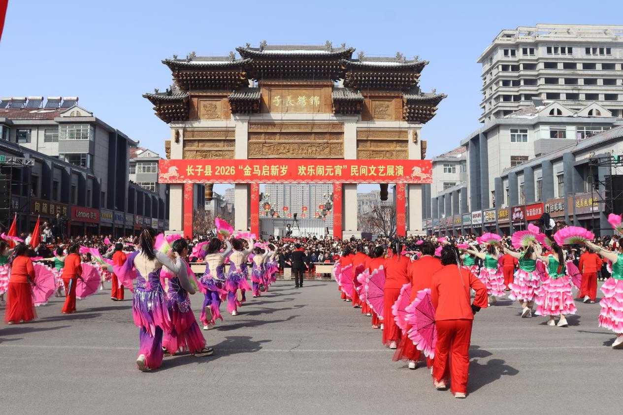 3月3日(农历正月十五),长子县2026年“金马启新岁 欢乐闹元宵”民间文艺展演活动隆重举行。演职人员带来了舞龙、舞狮、高跷、跑旱船、八音会、威风锣鼓、秧歌等极具本土特色的传统民俗节目,数万名群众齐聚现场,锣鼓喧天,人声鼎沸,共同沉浸在传统节日的浓厚喜庆氛围中。