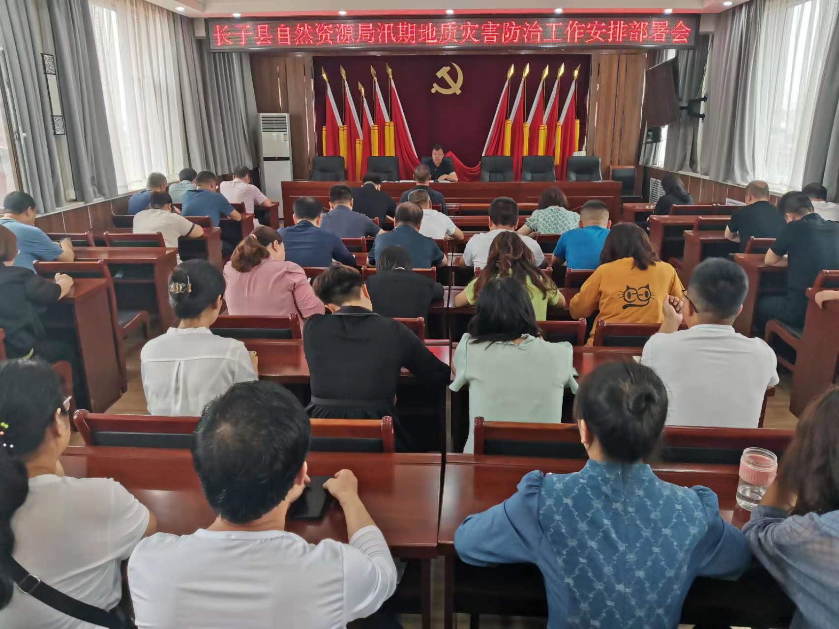 为全面贯彻落实国家、省、市、县防汛工作相关会议精神,切实保障人民群众生命财产安全,7月3日上午,长子县自然资源局在四楼会议室召开汛期地质灾害防治工作安排部署会。局党组书记、局长杨利锋主持会议,局党组成员、局各股室全体人员、事业单位负责人、中心所所长参加会议。