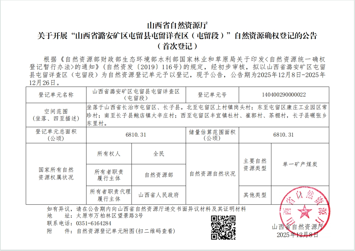 标题山西省自然资源厅关于开展“山西省潞安矿区屯留县屯留详查区(屯留段)”自然资源确权登记的公告(首次登记)