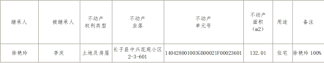 长子县不动产登记中心不动产继承(受遗赠)登记公告