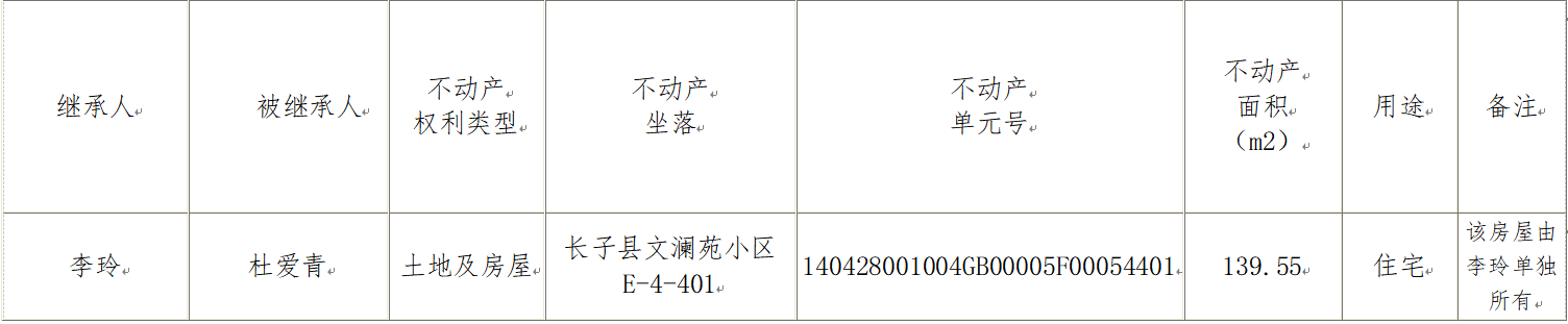 长子县不动产登记中心不动产继承(受遗赠)登记公告