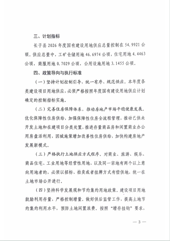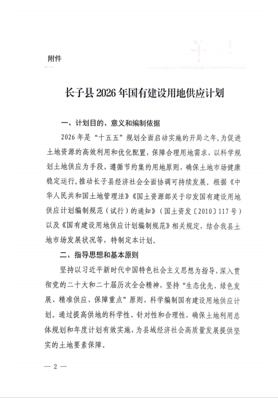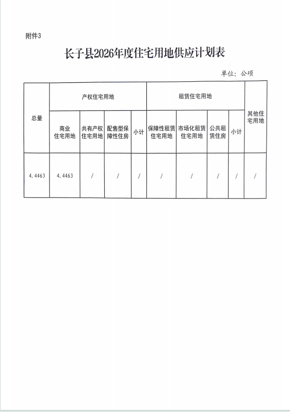 | 标题:长子县人民政府关于长子县2026年国有建设用地供应计划的批复 | |