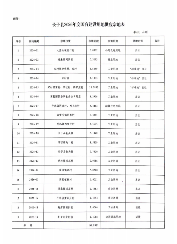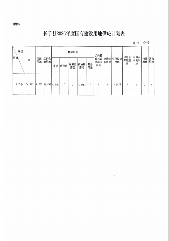 附件:长子县2026年国有建设用地供应计划