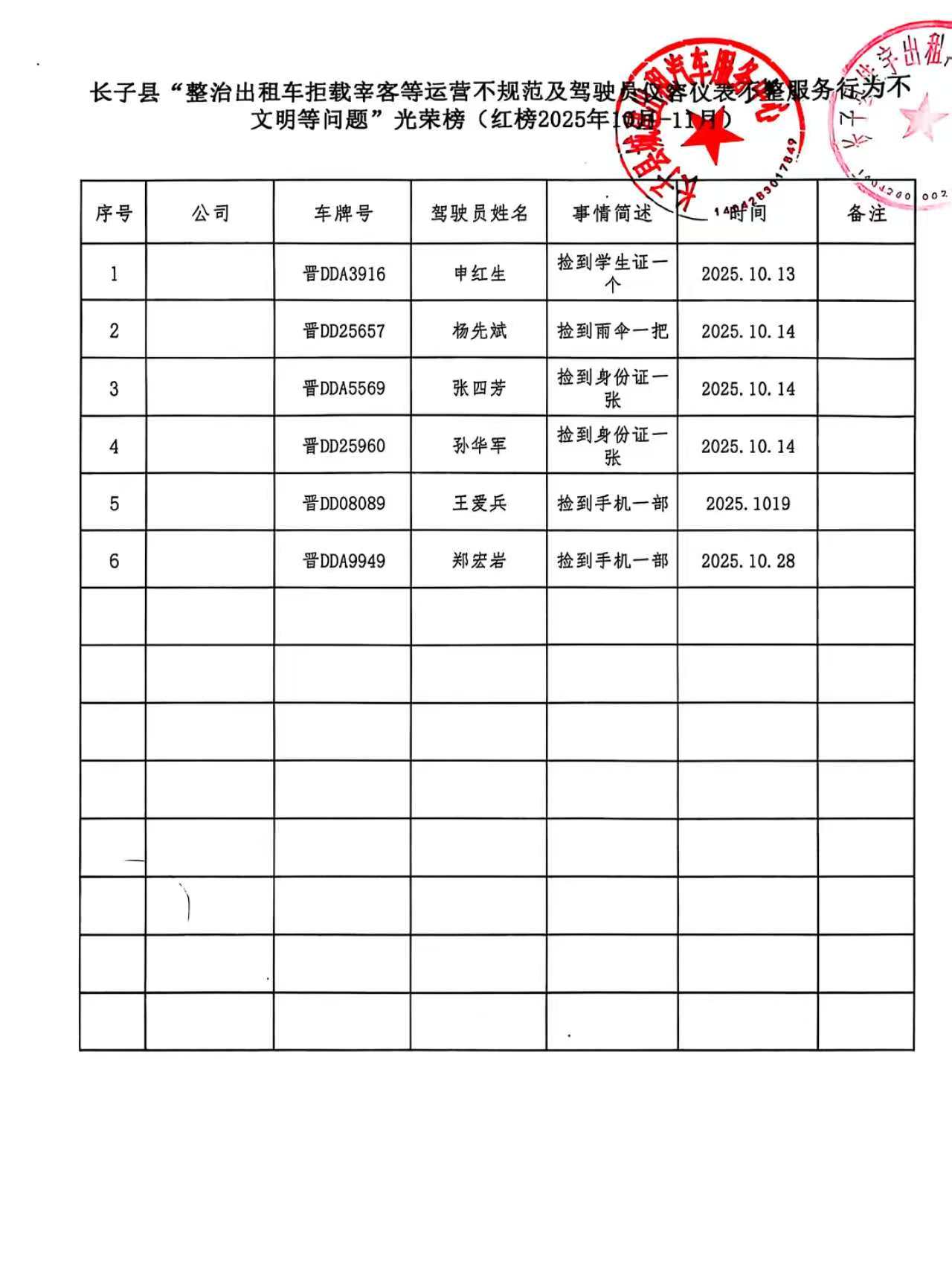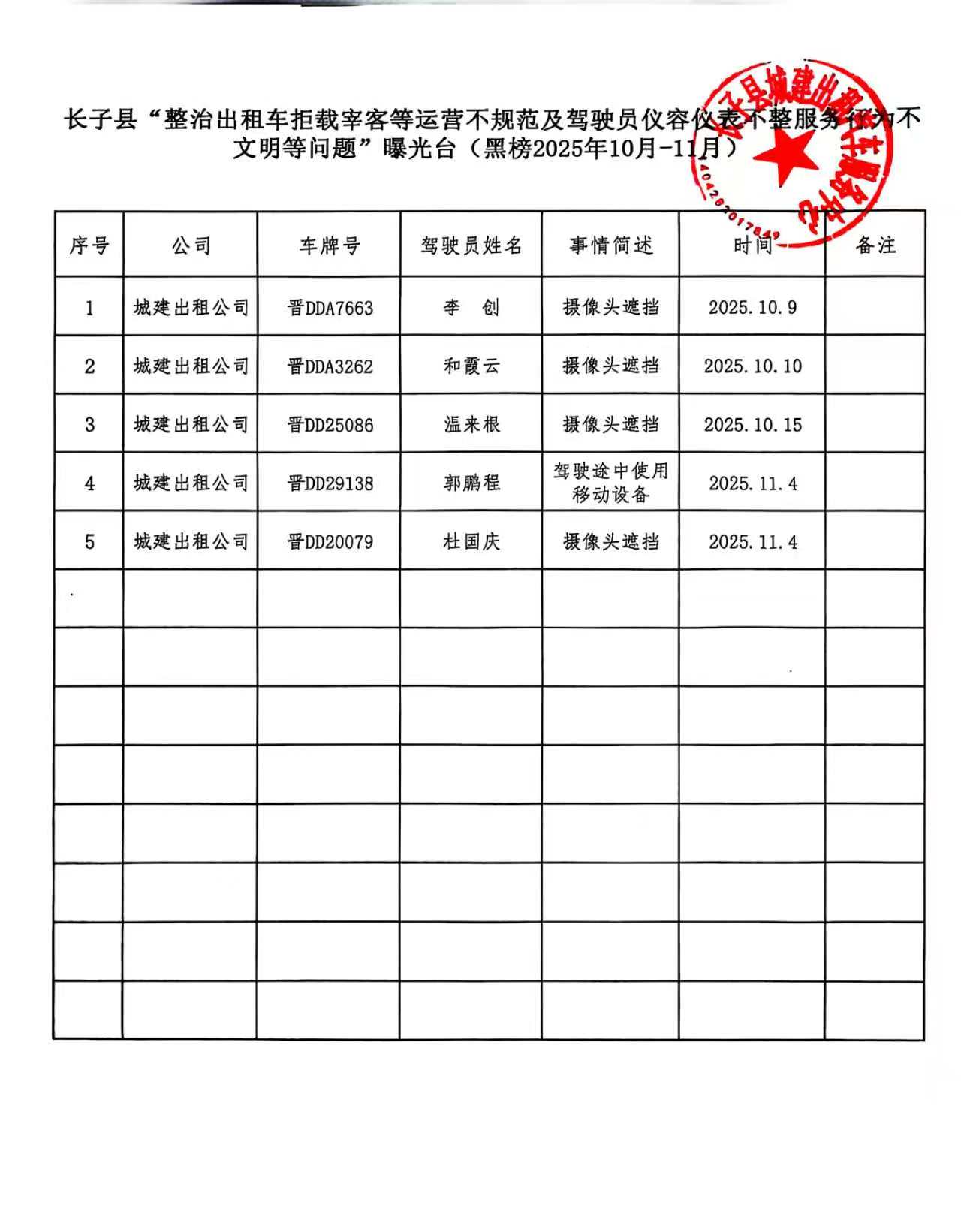 长子县“整治出租车拒载宰客等运营不规范及驾驶员