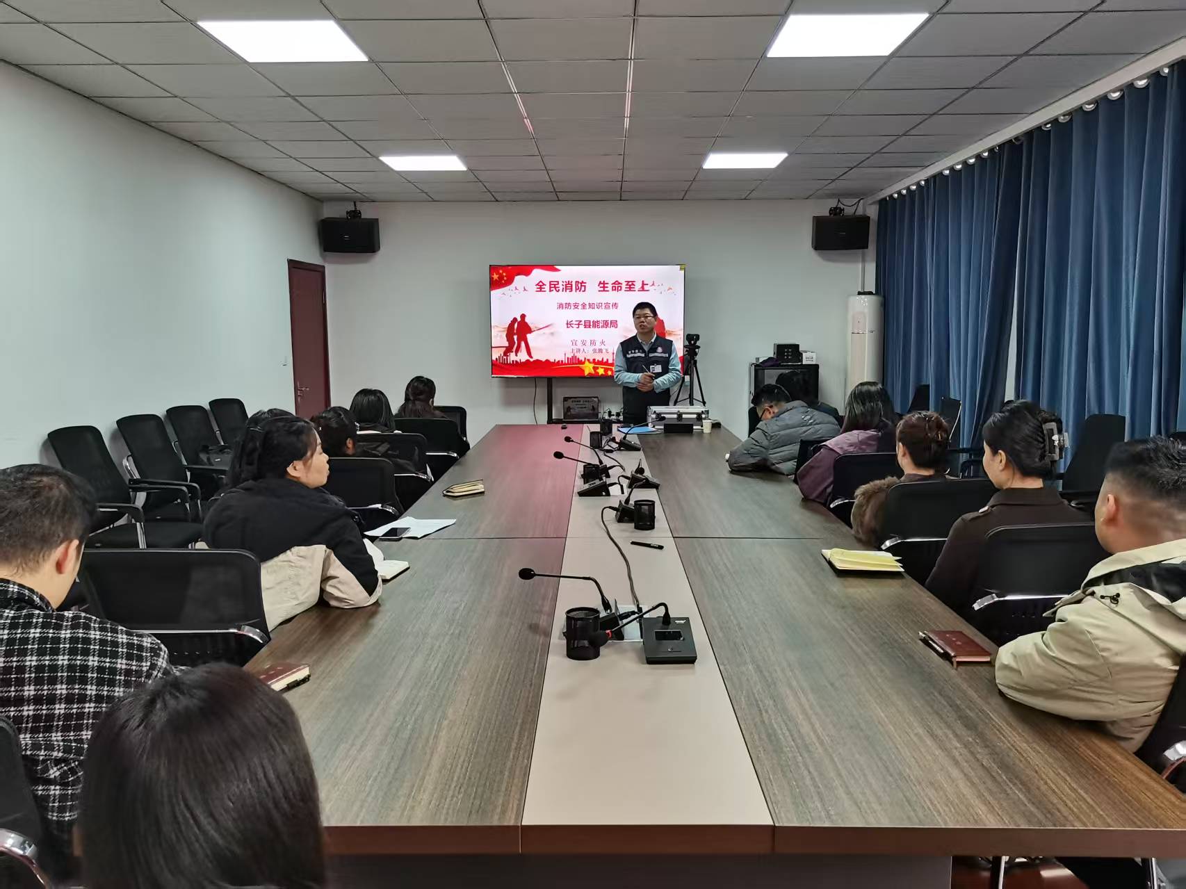 2025年10月27日下午在能源局会议室消防知识宣讲人给全体人员进行消防安全培训,此次培训有效强化了全员消防应急能力。培训围绕三大核心展开:一是消防知识普及,重点讲解火灾成因、不同场景(如办公室电器、家用电器、驾驶车辆起火等)的初期处置要点及逃生路线规划,通过案例分析让理论更易理解;二是消防意识提升,结合典型火灾事故,强调“预防优先”理念,纠正“小火无需重视”等错误认知,引导全员主动排查身边消防隐患;三是消防工具实操,现场演示灭火器“提、拔、握、压”使用步骤及消火栓连接方法,组织参训人员上手操作,确保人人能熟练使用常用消防器材。此次培训参与率达100%,全员均能掌握核心知识点与工具操作技巧,达到预期效果。
