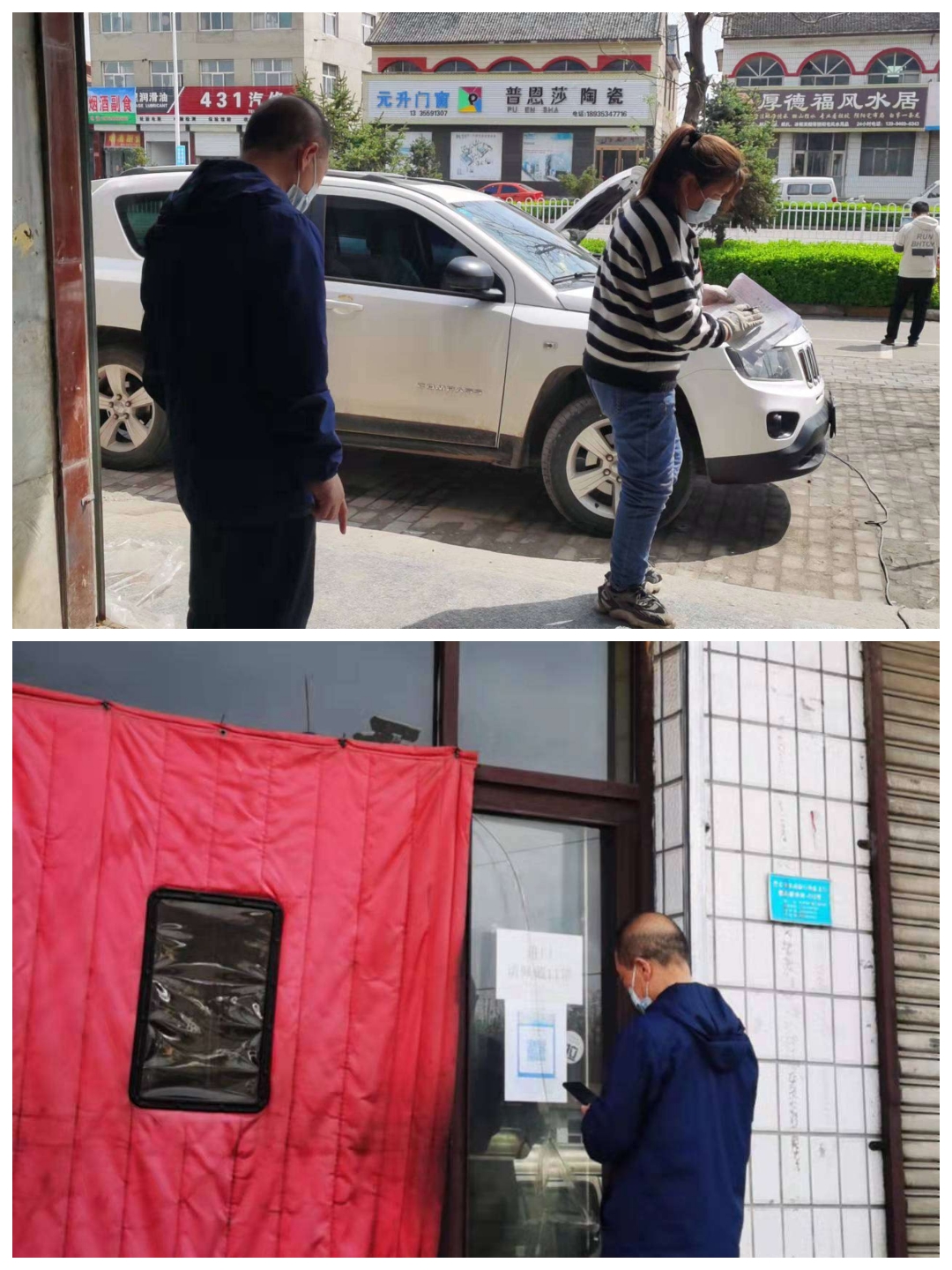 2022年4月15日,长子县市场局局领导带领相关股所工作人员在包街路段开展疫情防控督查工作,督促指导经营户做好场所码使用、查验健康码和行程卡、测体温等防疫工作。