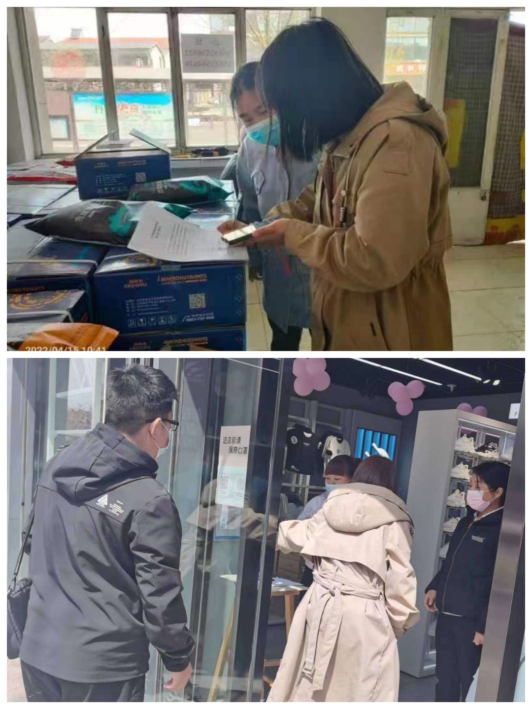 2022年4月15日,长子县市场局各股、室、所、队工作人员在包街路段、区域开展疫情防控督导检查工作,对经营户的疫情防控执行情况进行检查,督促经营户做好场所码使用、查验健康码和行程卡、测体温等工作,并责令疫情防控措施执行不到位的经营户进行停业整顿。