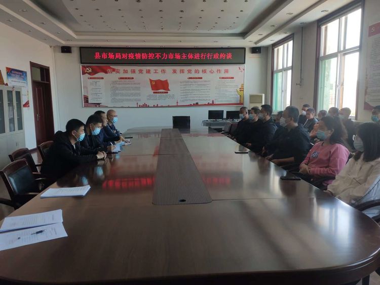 2022年5月1日,长子县市场局对疫情防控不力的市场主体进行行政约谈,局领导班子成员及相关股所工作人员参加。约谈要求,各市场主体要清醒认识当前疫情防控工作的复杂严峻形势,坚决克服麻痹思想、侥幸心理,进一步提高对疫情防控工作重要性的认识,按要求落实落细疫情防控各项措施。