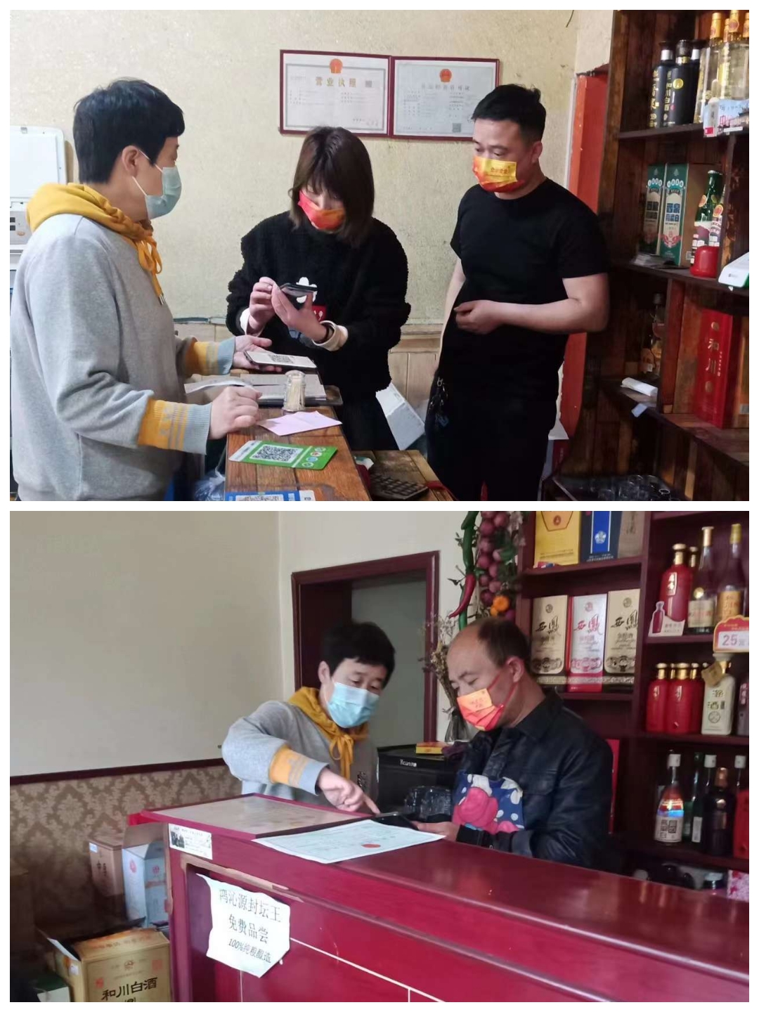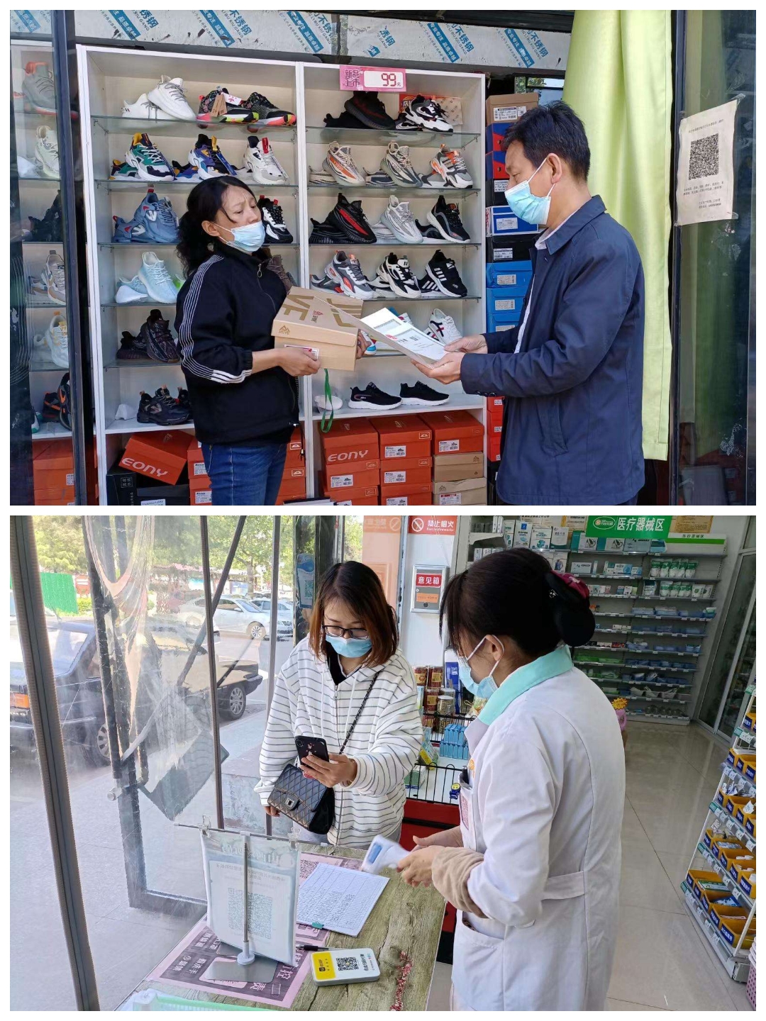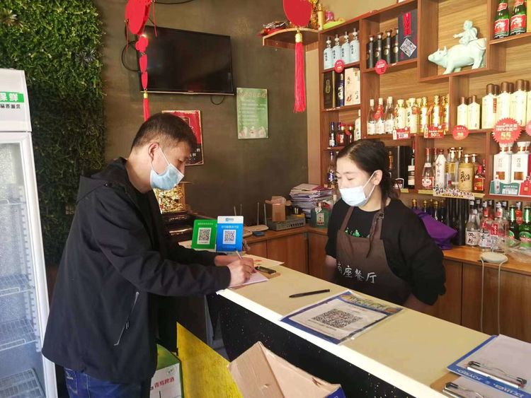 2022年5月1日,长子县市场局各股、室、所、队工作人员在包街路段开展入户检查,对商户戴口罩、测体温、扫场所码“三要素"等疫情防控措施执行情况进行检查。