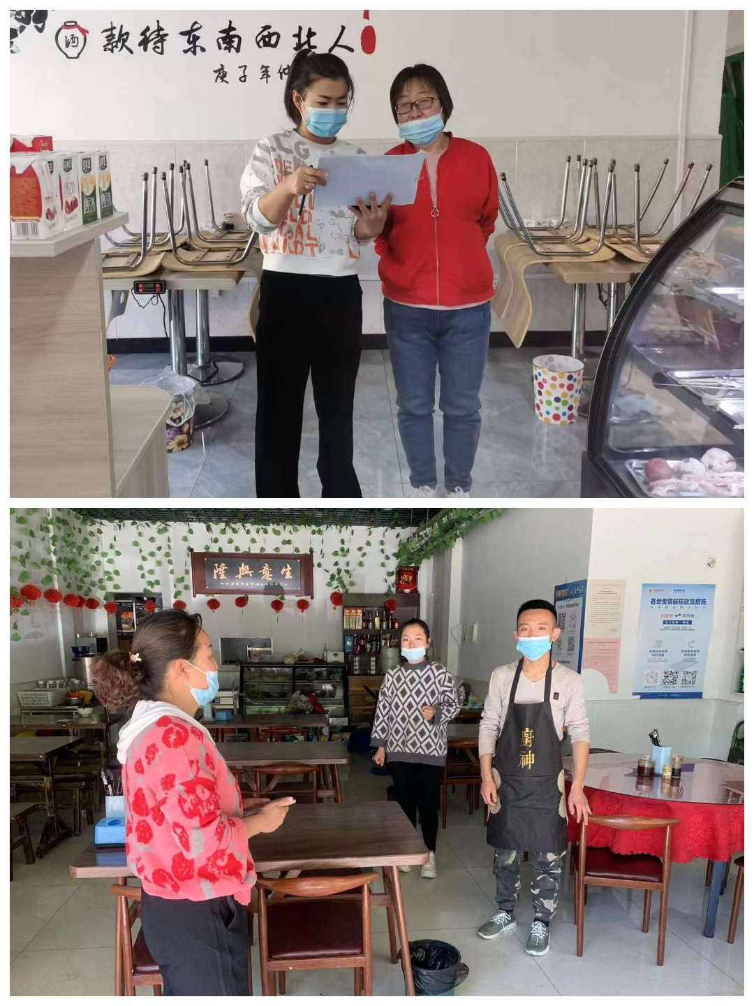 2022年5月1日,长子县市场局石哲所执法人员对辖区内食品店、餐饮店等经营户进行疫情防控检查,发放、张贴价格行为提醒告诫书,督促餐饮从业人员定期做核酸检测。