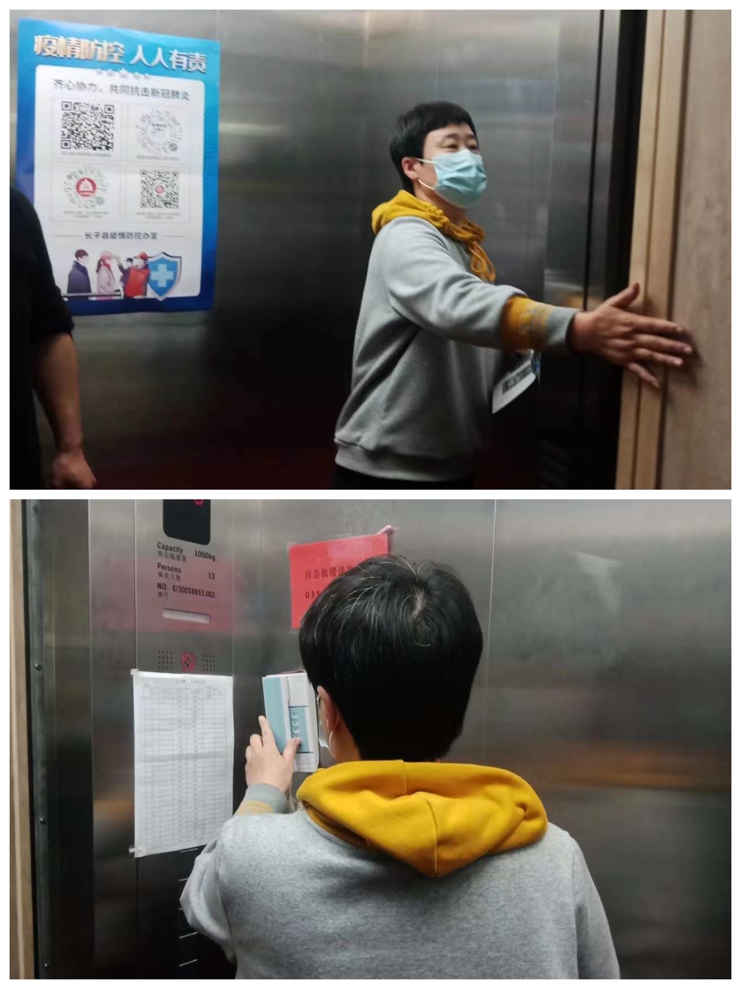 2022年5月1日,长子县市场局丹朱所执法人员在辖区内入户开展特种设备安全情况检查,以及戴口罩、测体温、扫场所码“三要素”落实情况检查。