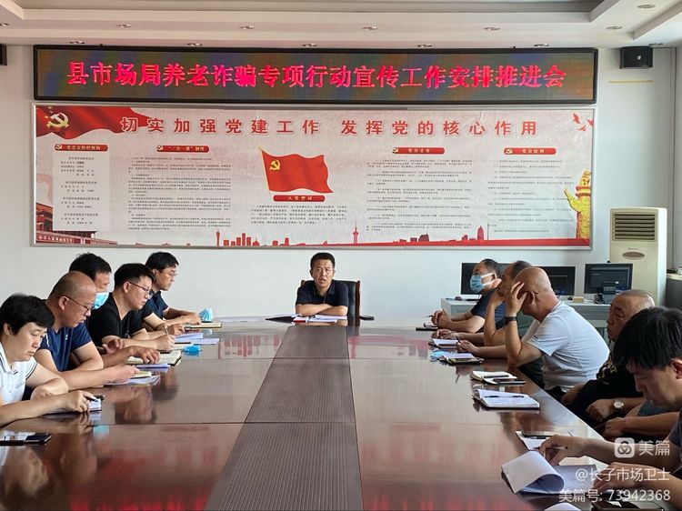 6月20日,长子县市场局召开打击整治养老诈骗专项行动宣传工作推进会,会议指出要推进养老反诈宣传进农村、社区、公园、广场、商超等老年人群密集场所,通过悬挂横幅、张贴海报、发放宣传资料、现场答疑等方式多举措开展打击整治养老诈骗专项行动宣传工作,全面提高群众对打击整治养老诈骗专项行动的知晓率和参与率,织密养老诈骗防护网,切实维护老年人的合法权益,为全县老年人安享晚年创造和谐稳定的社会环境。