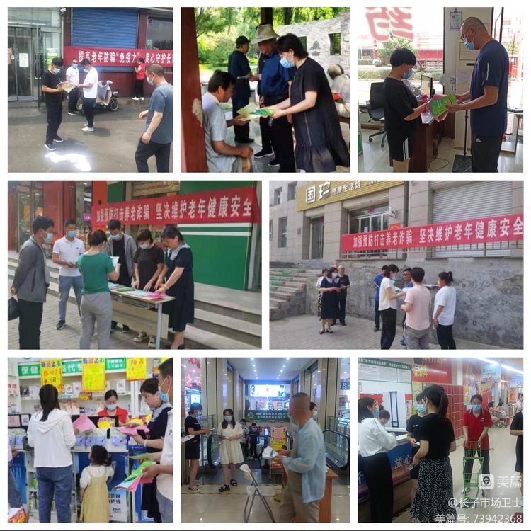6月20日,长子县市场局工作人员深入农村、商场、超市、药店等老年人群密集场所,通过悬挂横幅、发放宣传资料、现场讲解等方式开展打击整治养老诈骗专项行动宣传工作。