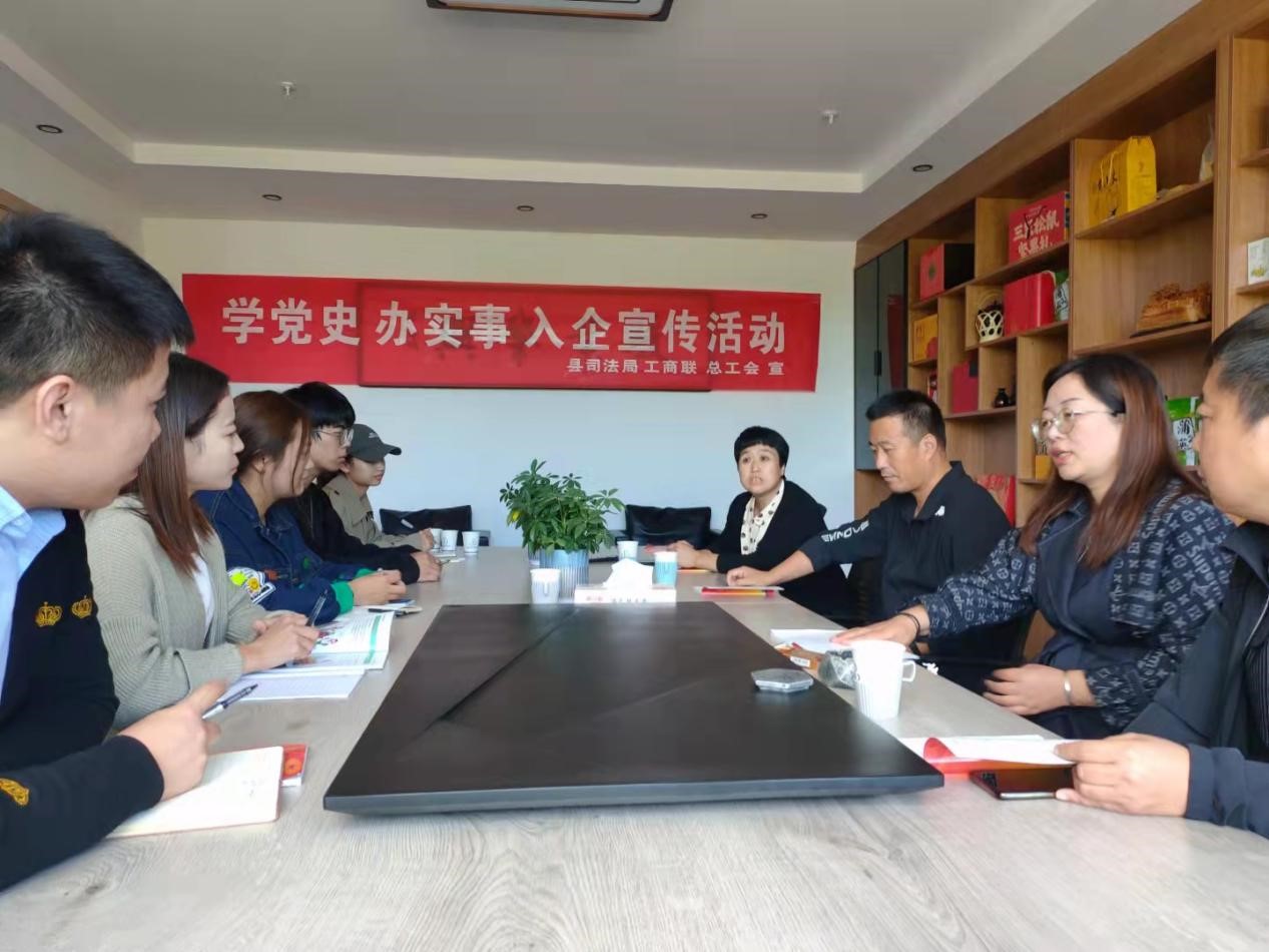 9月28日,长子县司法局联合县工商联,县总工会深入山西优品味有限公司开展“学党史办实事入企宣传”活动,旨在帮助民营企业防范法律风险,维护合法权益,加快纠纷解决,健全规章制度,为民营经济健康发展提供优质法律服务,营造良好法治环境。