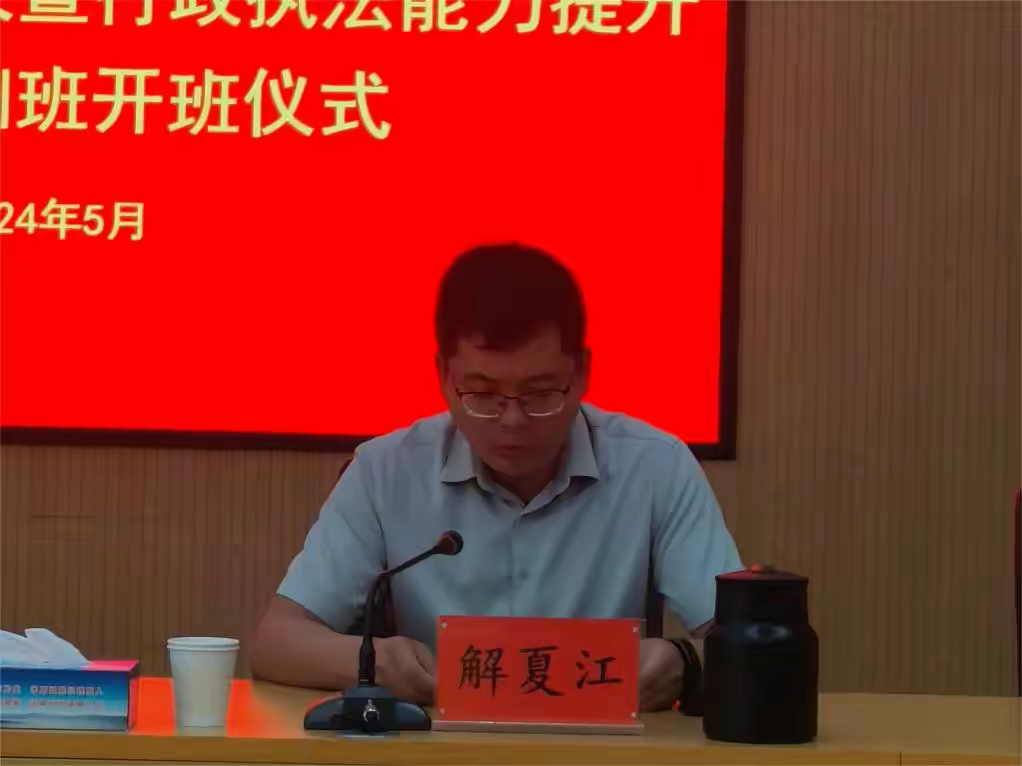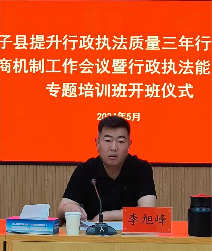 为全面贯彻落实中央、省、市、县提升行政执法质量三年行动工作要求,提升我县行政执法质量和效能,5月30日,我县召开提升行政执法质量三年行动计划会商机制工作会议暨行政执法能力提升专题培训班开班仪式。县委全面依法治县委员会执法协调小组组长、政府副县长、公安局长李旭峰出席并讲话,县纪委监委、县委政法委、县委编办、县司法局相关负责人及县直各行政执法部门分管领导、法制科科长,各乡镇综合执法队副队长、执法办主任共90余人参加会议。
