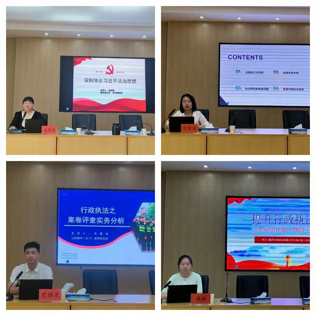 会后,开展了行政执法能力提升专题培训,市委党校、长治学院、山西振坤律师(长子)事务所有关专家、法律顾问以及我局行政执法监督股股长等,围绕学习贯彻党的二十大精神与习近平法治思想、规范行政执法视角下的行政处罚法与行政强制法解读、行政执法之案卷评查实务分析、提升行政执法质量三年行动计划解读等内容作了专题授课。