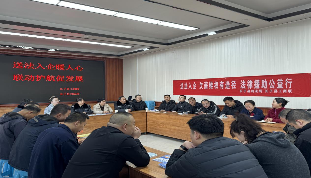 为切实维护企业职工合法权益,助力构建和谐稳定的营商环境,2月6日,长子县司法局、县工商联、长子县法律援助中心及长子县载舟律师事务所、长子县振坤律师事务所,一起走进长子县新易达物流公司,开展了“送法入企暖人心 联动护航促发展”暨“欠薪维权有途径 法律援助公益行”主题普法活动。