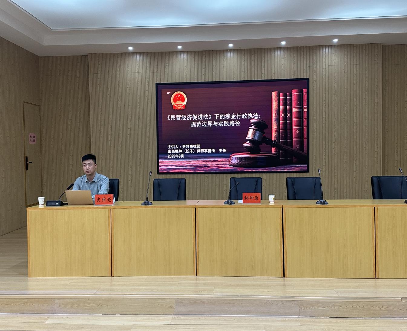山西振坤(长子)律师事务所律师史雅亮结合司法部、最高院最新发布的涉企案例解读对《民营经济促进法》下的涉企行政执法规范边界与实践路径进行了讲解。
