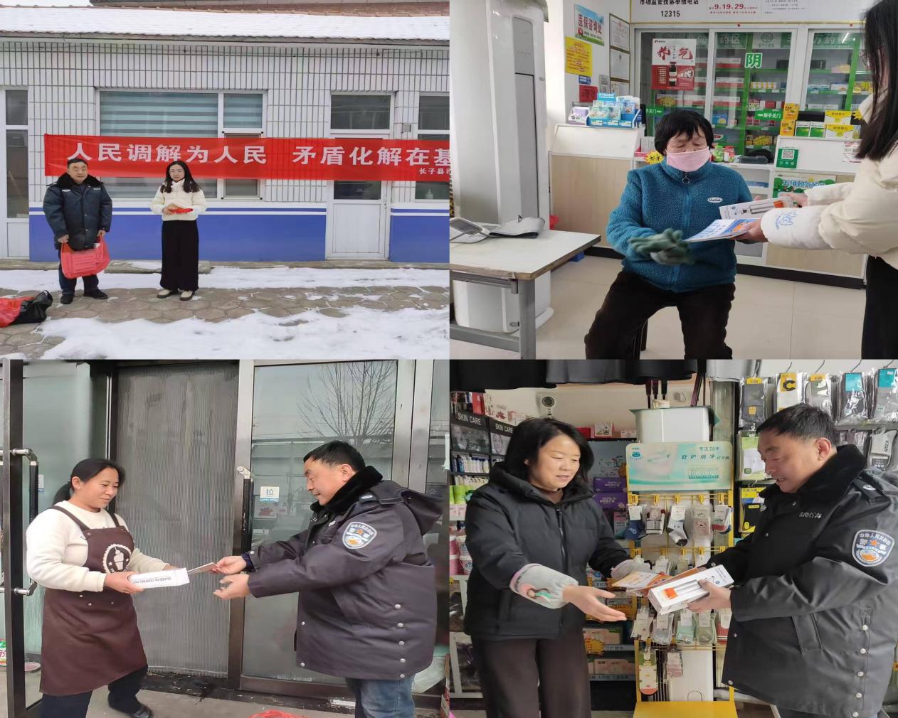 本次宣传活动坚持全域覆盖、精准发力、形式多样原则,各乡镇司法所结合辖区实际,创新宣传载体、拓宽宣传渠道,实现宣传实效最大化。活动现场,工作人员逐户走进辖区各商铺、药房,与经营者面对面沟通交流,通过悬挂宣传横幅、发放调解宣传油壶及人民调解宣传手册,向群众系统讲解人民调解免费、便捷、高效、不伤和气的制度优势,详细说明调解申请条件、受理范围、办理流程及调解协议法律效力等核心内容,引导群众在面对矛盾纠纷时摒弃过激维权方式,优先选择人民调解化解矛盾。