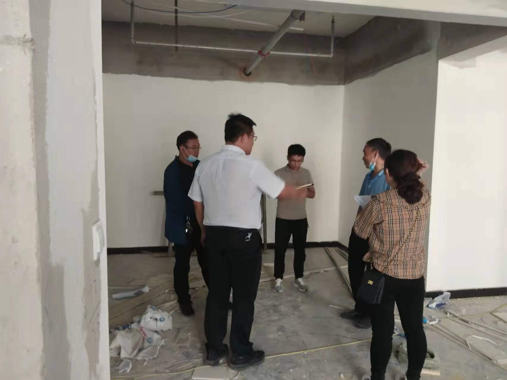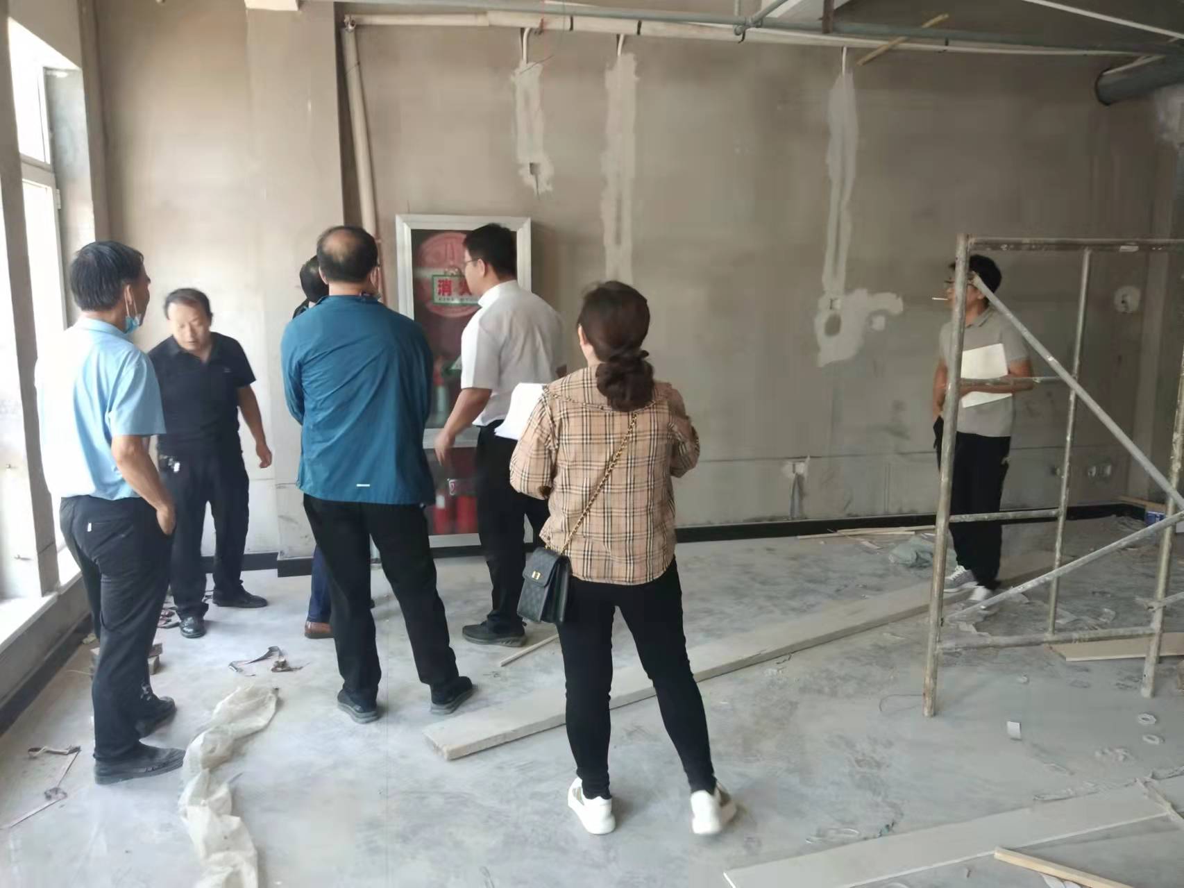 9月2日,县委常委、政法委书记在退役军人事务局党组成员陪同下到新场所查看工程进度。