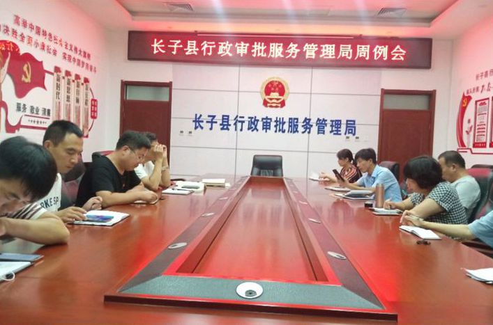 7月6日上午,长子县行政审批服务管理局在局会议室召开周例会,副局长赵艳娟女士主持会议,会议对上周工作做了回顾总结,并对本周工作做具体安排,并组织全体学习贯彻县关于纪念党成立99周年会议精神,各股室主任、股长及机关全体员工参加会议。